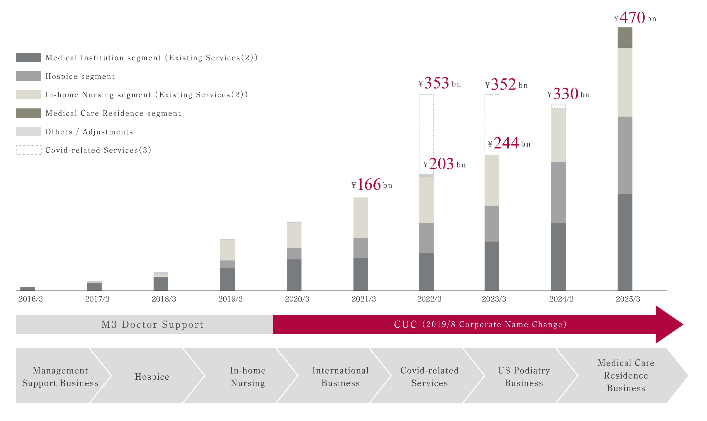 Since its establishment in 2014, the CUC Group has continued to expand the scale of its business. We will continue to respond quickly to changes in the environment surrounding the healthcare industry and aim to further expand the scale of our business.